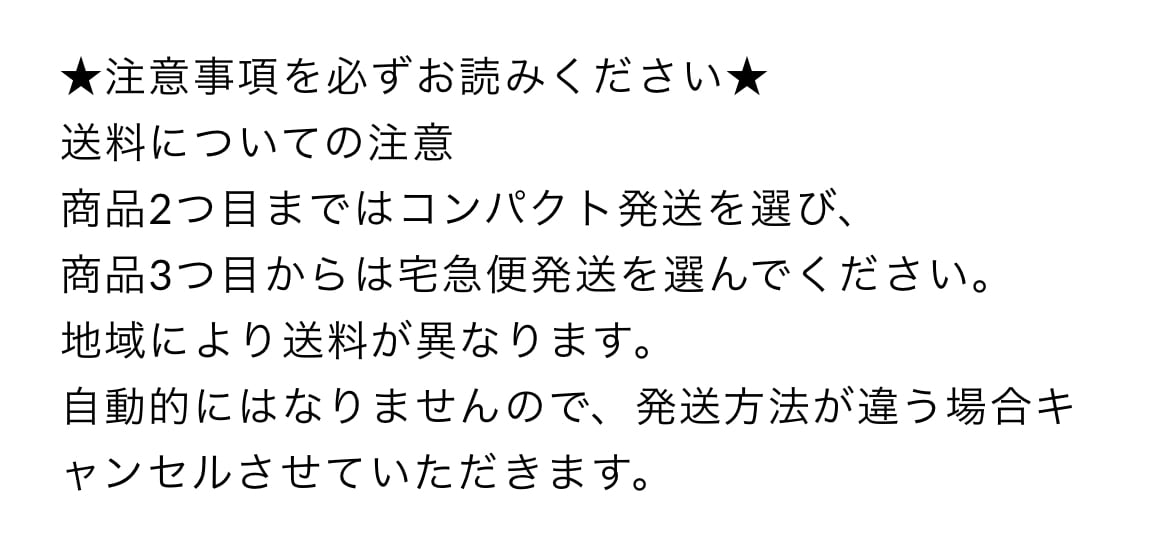 商品3つ目からはヤマト宅急便発送を選んでください。